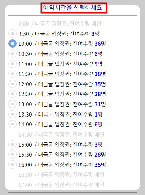 대금굴 홈페이지 예약방법