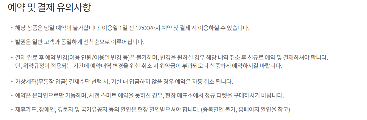 비발디 파크 스키장 예약 및 결제 유의사항