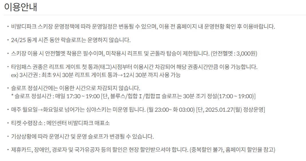 비발디파크스키장 2024-2025 시즌 개장일 및 운영 일정