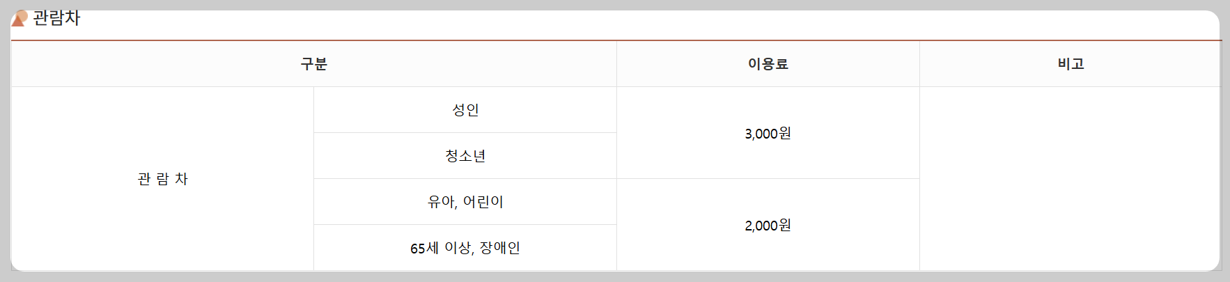 - 이용 시간: 계절에 따라 관람 및 매표 시간이 달라집니다. (예: 11~2월은 오전 8시 30분오후 5시 매표, 6시까지 관람 가능)