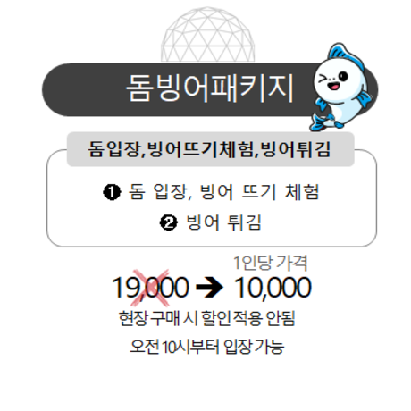 - 돔빙어뜨기: 실내에서 진행되는 빙어 낚시로 날씨에 상관없이 즐길 수 있습니다.