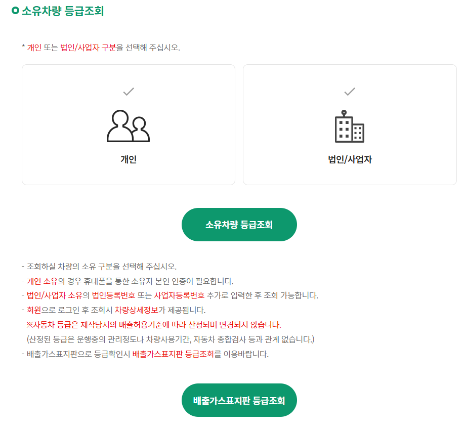 - 환경부 자동차 배출가스 종합전산 시스템: 차량 등록번호만 입력하면 손쉽게 확인할 수 있습니다.