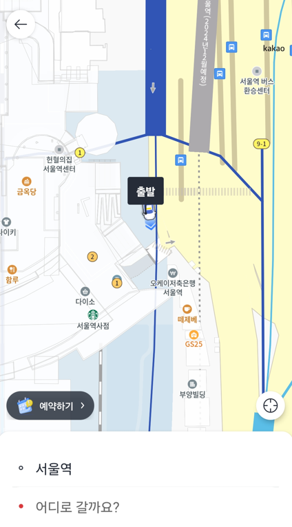 서울역에서 출발해서 용산역에 도착장소로 설정해 봤습니다.