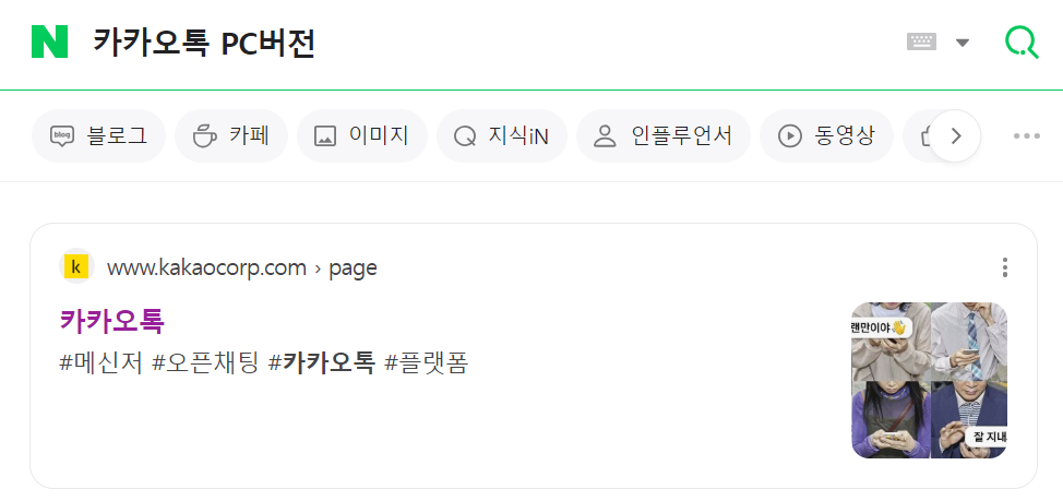 포털사이트 검색창에 카카오톡 pc버전이라고 검색을 해주세요