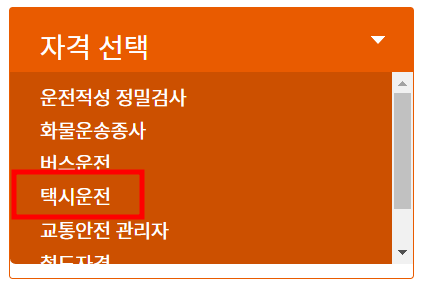 - 택시운전자격시험 원서접수 화면에서 선택해주세요