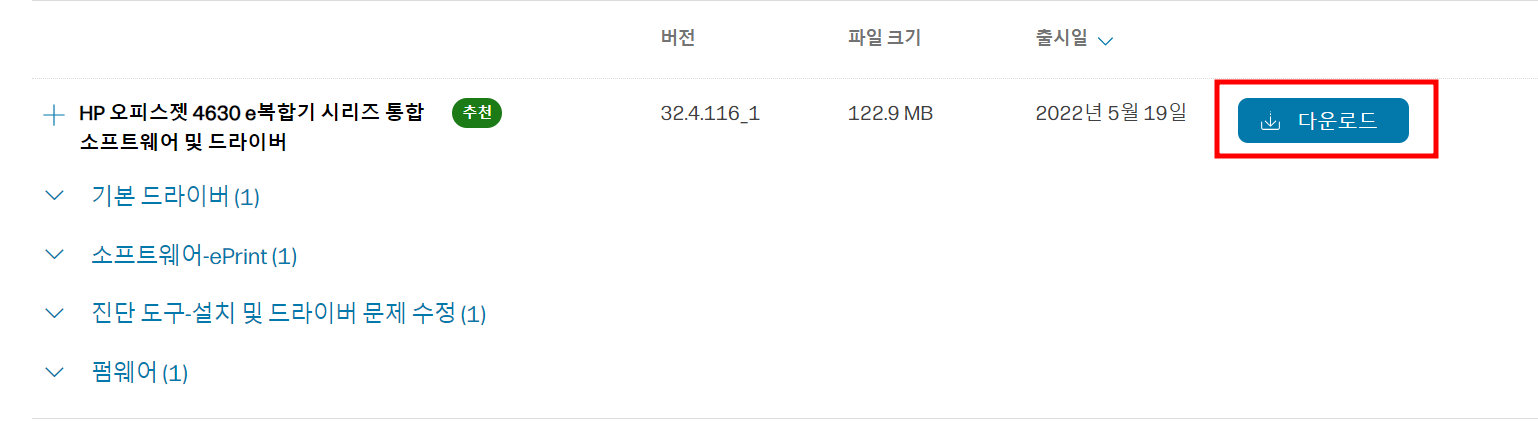 - 드라이버 다운로드: 최신 드라이버를 선택하여 HP 프린터 드라이버 다운로드를 시작합니다.